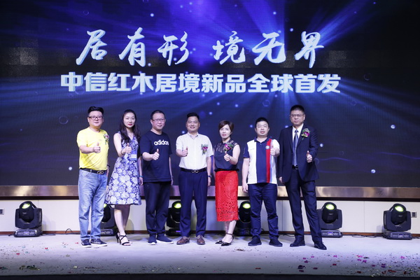 现场进行了“居境”品牌的首发仪式,中信红木董事长李忠信、董事长夫人李伟珍、博天国际侯导师、中信红木营销总监刘中炎、中信红木福建水头经销商李良专、中信红木山西长治经销商李合义、中信红木湖南长沙经销商杜鹃等重要嘉宾一同上台见证这一重要时刻。